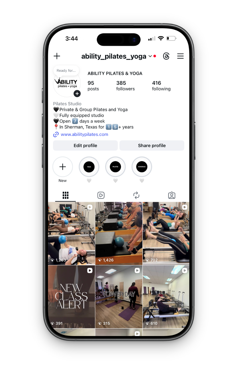 Marketing Y’all didn’t just bring visibility—we brought alignment between the studio’s heart and its digital footprint. Ability Pilates + Yoga continues to be more than just a wellness space—it became a movement people want to be part of and are proud to tell their friends about!