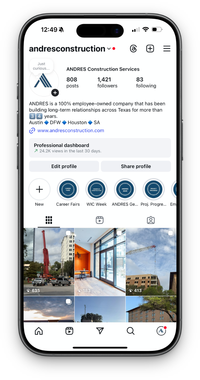 Despite their impressive track record, ANDRES' digital footprint didn't fully reflect their industry stature and their storytelling on social media didn't capture the depth of their projects or the company's unique culture.